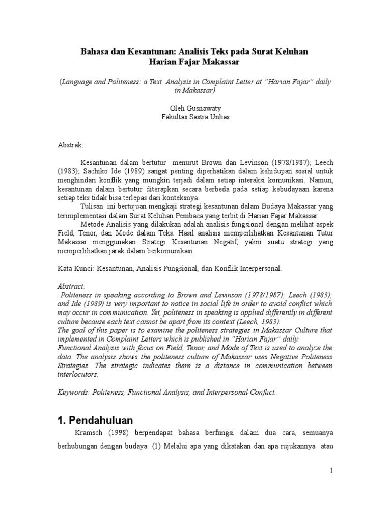Bahasa Dan Kesantunan Analisis Teks Pada Surat Keluhan Pdf