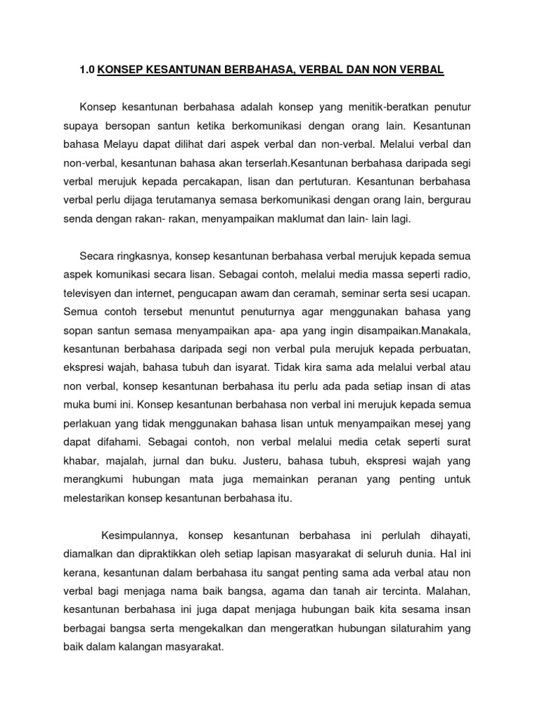 Dalam masyarakat Melayu kesantunan berbahasa sangat penting kerana bahasa. Kesantunan Nonverbal Merujuk kepada perbuatan ekspresi wajah bahasa tubuh dan isyarat Konsep kesantunan berbahasa non verbal merujuk kepada semua perlakuan yang tidak menggunakan bahasa lisan untuk menyampaikan mesej yang dapat difahami. KESANTUNAN BERBAHASA DALAM SURAT LAMARAN DAN WAWANCARA KERJA BAB I PENDAHULUAN 11 Latar Belakang Bahasa merupakan alat untuk berkomunikasi antar manusia dalam kehidupan masyarakat yang berupa bunyi ujar yang dihasilkan oleh alat ucap manusia bahsaa juga merupakan alat untuk menunjukkan identitas masyarakat pemakai bahasa.